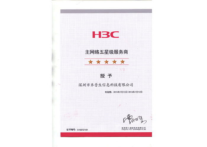 • H3C主網絡五星級服務商
