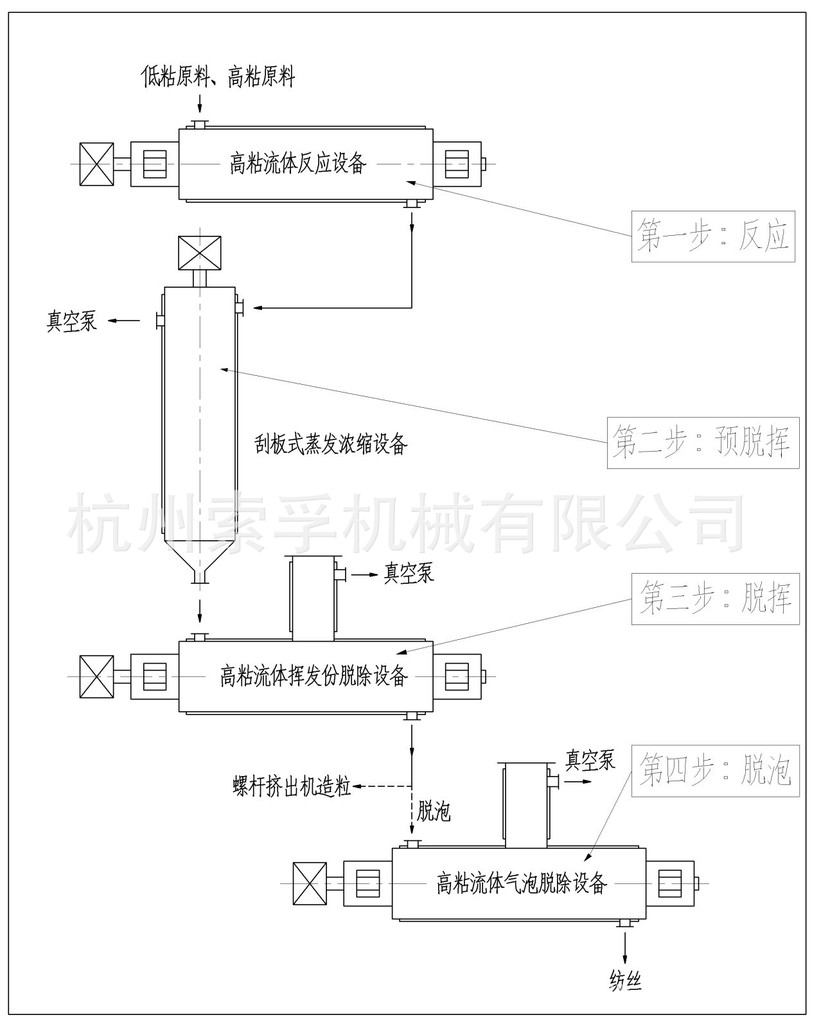 有些高性能聚合物高粘流體中,氣泡太多或氣泡直徑太大會大大影響產品質量,針對該工藝過程,索孚機械公司開發了高粘流體氣泡脫除設備。該設備在增強高粘流體表面更新速率、提供大的相接觸面積的同時,通過對嚙合元件的特殊設計,解決了氣泡帶入高粘流體中的問題,大大提高了產品品質。