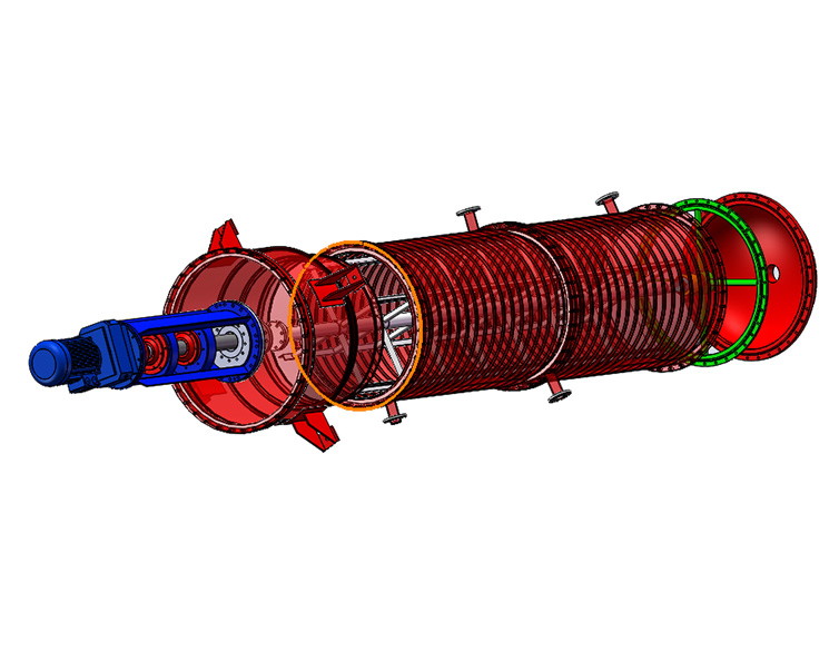 加熱室圓筒體內表面,必須經過精加工。保證刮板與加熱面之間的小隙在1.5±0.3毫米左右。