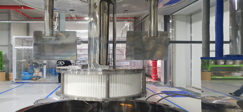物料在超細研磨時會釋放能量,從而物料自身發熱,磨效越高,物料發熱溫度越高。但物料發熱到一定高的溫度后,由于物料自身溫度較高,阻礙了物料自身釋放能量,使磨效降低。根據超細研磨時物料自身釋放能量的特點,我公司開發了雙冷卻型(籃子及拉缸均帶冷卻夾套)籃式砂磨機。這種雙冷卻的籃式砂磨機既有效的控制了物料的溫度,又減少了溶劑的揮發,提高了磨效。物料一般控制在溫升30度以內,而且籃圈使用了高強度材料,提高了使用壽命。棒銷和籃底軸承等易損件都采用了非常耐磨的材料,真正提高了設備的使用壽命,使共軸籃式研磨機有了質的提升。