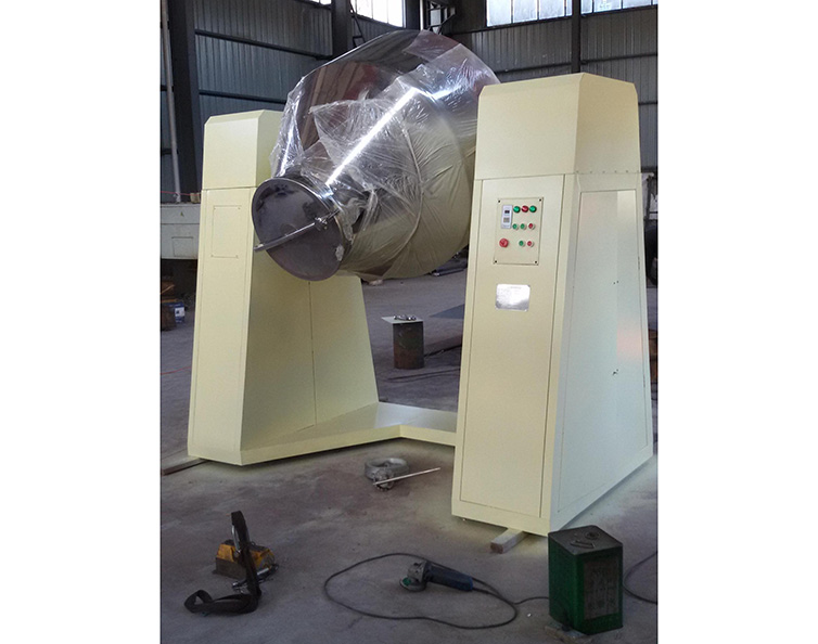 編輯由電動機、減速機經齒輪傳動帶動混合罐體轉動,工作時將配制好的各種粉料加入到混合機罐體內,通過罐體的回轉,使物料靠其重力和離心力反復進行聚合和分離而達到混合均勻,混合好的物料靠自重由排料口卸出。