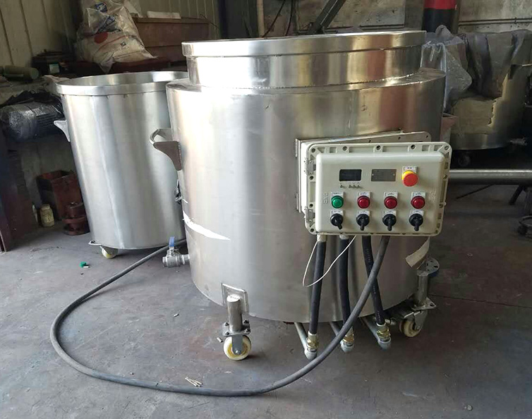 電加熱拉缸為雙層不銹鋼拉缸,加熱介質(zhì)常規(guī)選用導(dǎo)熱油,用電加熱棒方式加熱,用于需要保溫或升溫物料的儲存或攪拌。不銹鋼材質(zhì),內(nèi)外拋光,不容易掛料,且容易清洗,裝配4個橡膠工業(yè)腳輪,2個帶有剎車裝置,可以在現(xiàn)場輕松移動,儲存靈活性強(qiáng),方便物料攪拌后轉(zhuǎn)移。主要配套用于分散機(jī)、研磨機(jī),乳化機(jī)等設(shè)備。