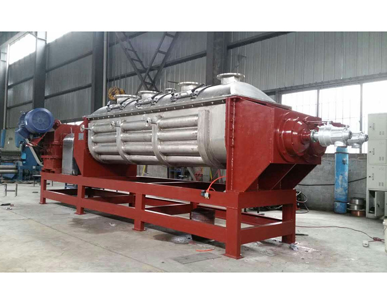 .混合機除夾套有傳熱功能,其主要的傳熱單元還是攪拌軸和攪拌盤,攪拌軸和槳盤中間設計是空心的,能通入0-300℃傳熱介質循環,加上攪拌軸的旋轉,單位時間內物料接觸換熱面積增加,使該混合設備具有高效的傳熱能力.是高粘流體物料反應,蒸發,干燥,脫輝的首選裝置。