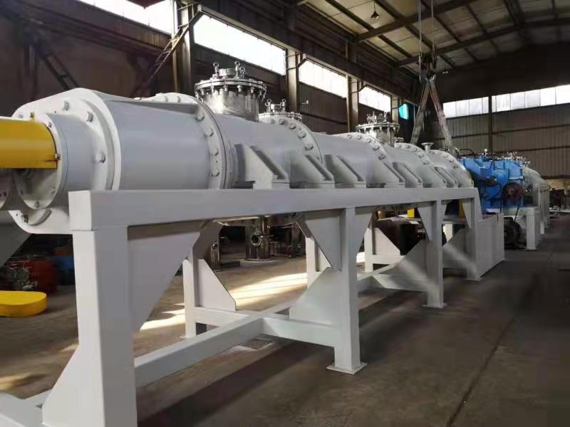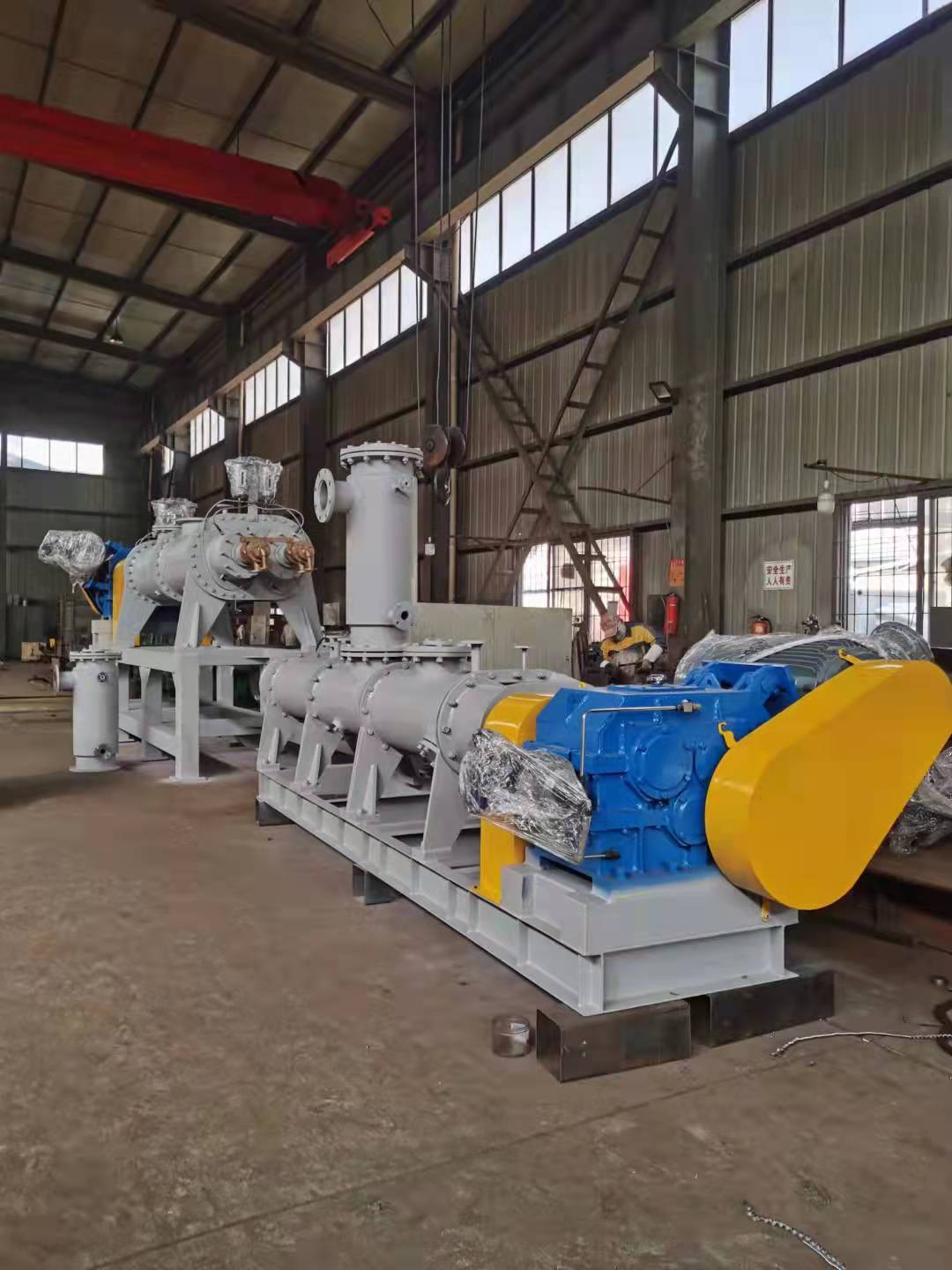 為了適應在真空狀態下的操作,專門安裝了適用于高粘度物料的齒輪泵式出料器。該出料器直接安裝在主設備上,消除了設備內的死角。齒輪泵式出料器在稍微超負荷的條件下工作,以保證物料能連續地排出,并輸入下一工段進行包裝。