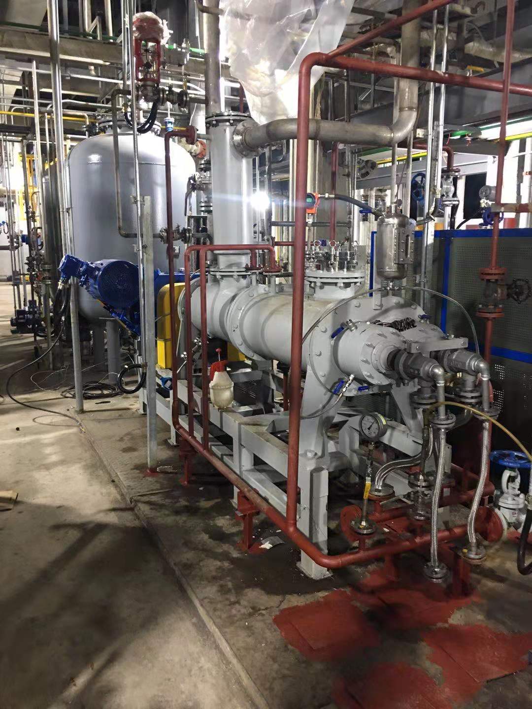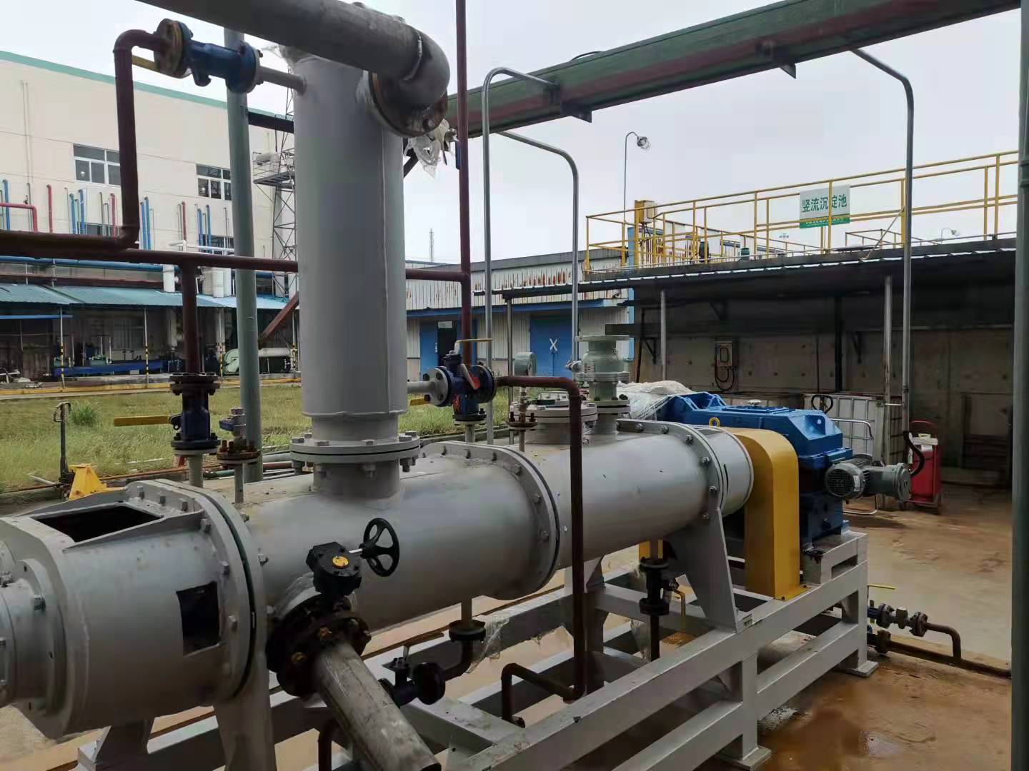 為了適應(yīng)在真空狀態(tài)下的操作,專門安裝了適用于高粘度物料的齒輪泵式出料器。該出料器直接安裝在主設(shè)備上,消除了設(shè)備內(nèi)的死角。齒輪泵式出料器在稍微超負(fù)荷的條件下工作,以保證物料能連續(xù)地排出,并輸入下一工段進(jìn)行包裝。