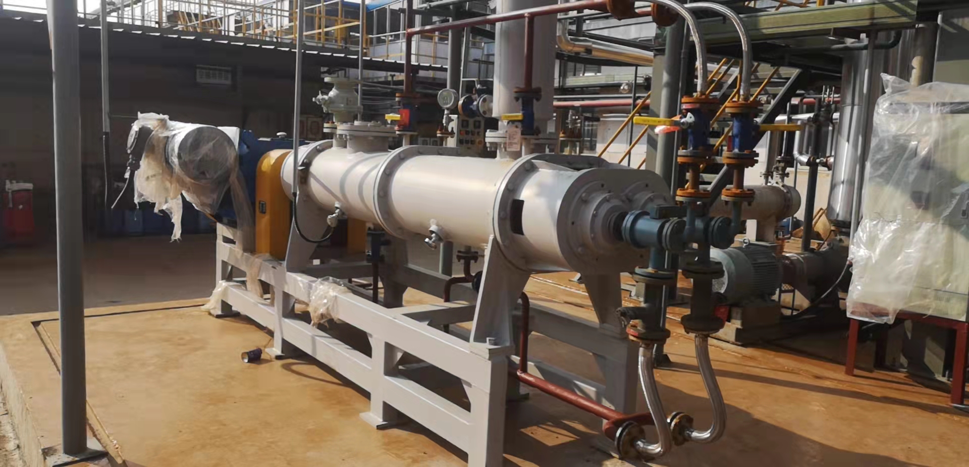 WZS型自清潔脫揮器的裝料系數(shù)通常范圍是50-80%,為氣-液分離和流動留出了足夠的自由空間。設(shè)備內(nèi)的平均裝料高度取決于出料端的堰板,該堰板的幾何形狀和高度可調(diào)節(jié)。與螺桿擠壓類設(shè)備不同,WZS型自清潔脫揮器內(nèi)物料的軸向輸送速度與攪拌軸轉(zhuǎn)速無關(guān),使之對進(jìn)料量和組成的變化都具有極好的適應(yīng)性,并可減少設(shè)備的磨損。